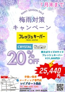 本格的に梅雨入りしましたね。 ジメジメするいやな時期かもしれませんが、こんな時こそ! バチバチの強撥水で車を守るKeePerコーティングがおすすめですよ! 先にインスタグラムでは告知させて頂きましたが、クリスタルキーパー […]